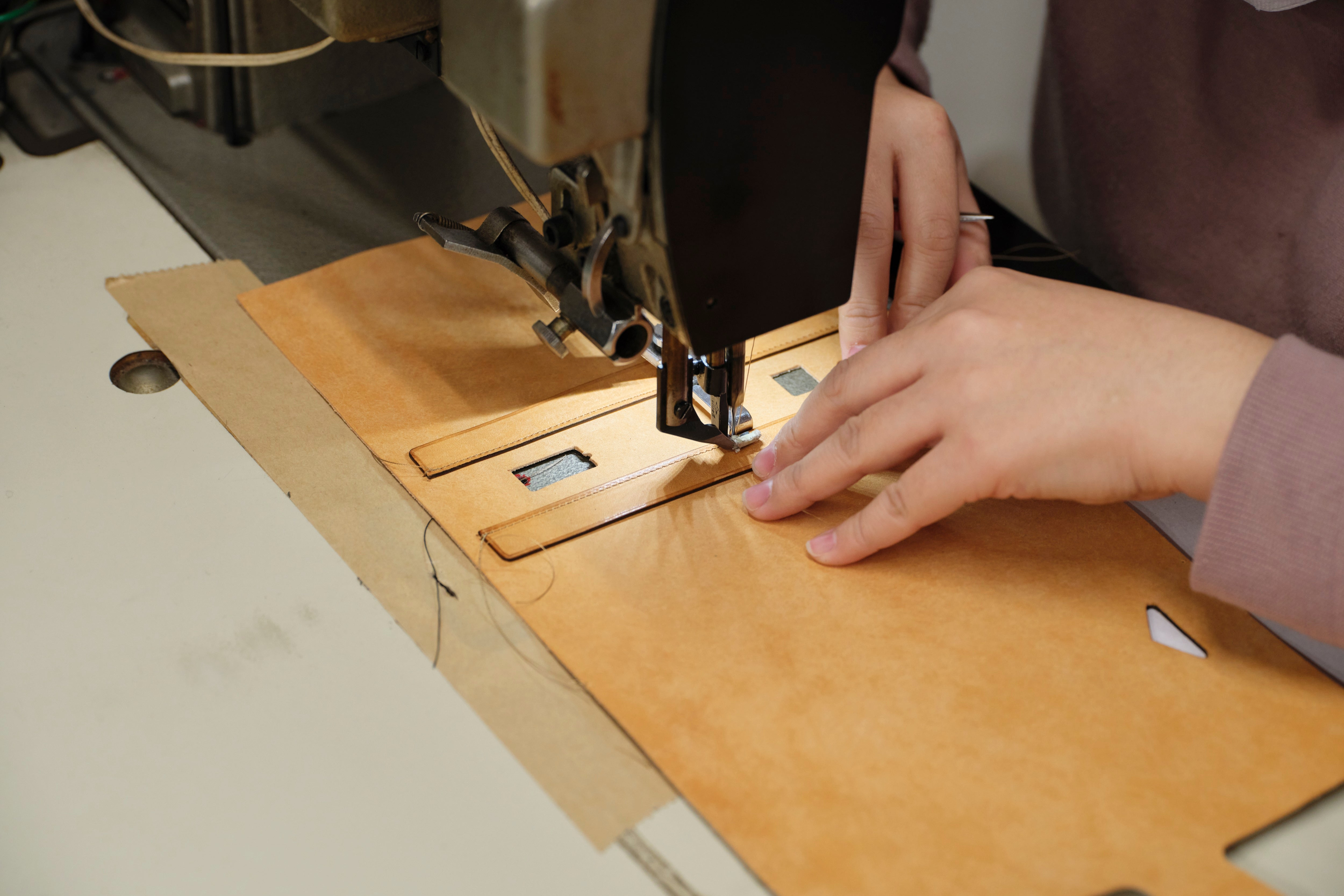 組み立てた革は、ミシンで縫い合わせていきます。細かく、等間隔で刻むステッチの美しさが、製品の美しさの要となっています。